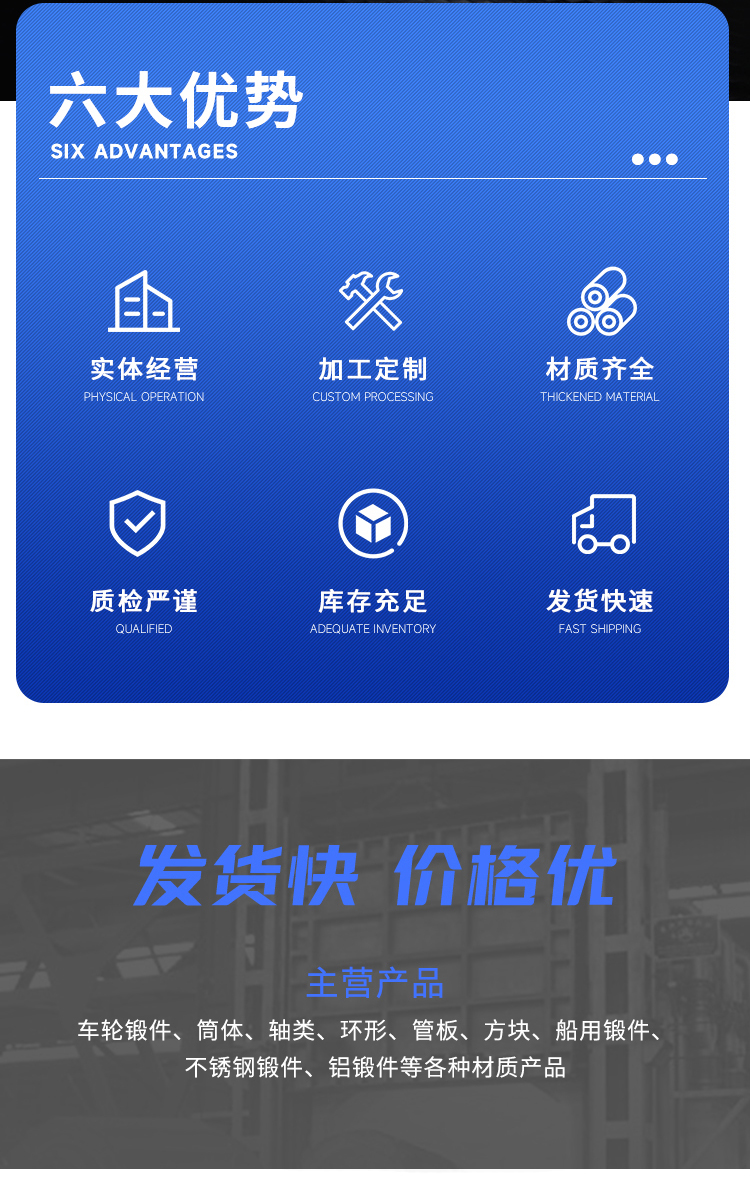 【質量保證】:我們公司有鍛件質量檢驗認證,所有產品都是經過嚴格探傷,保證每件產品合格出廠,出廠材料提供質保書及探傷報告。